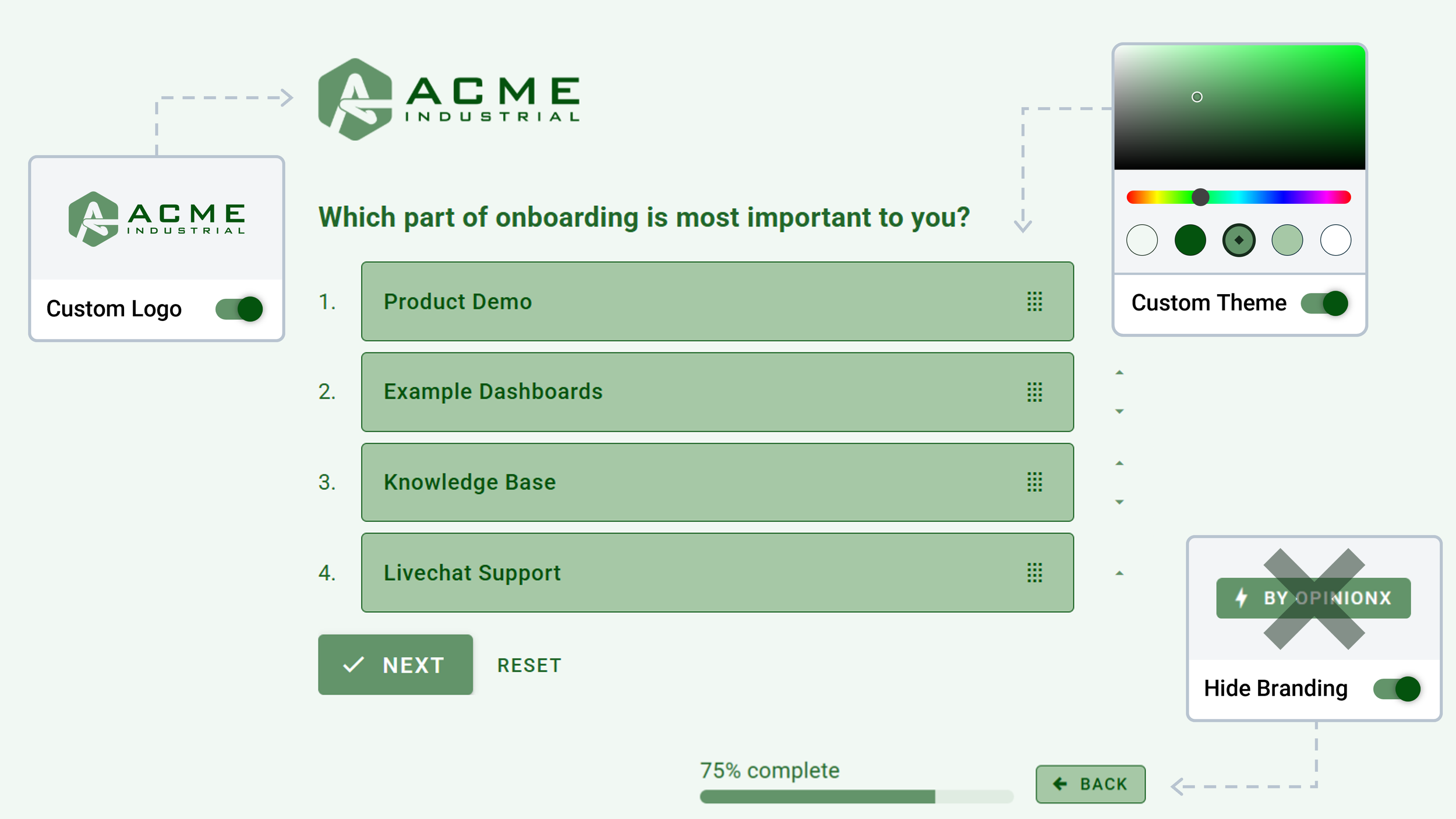 Customize your survey to match your brandโs look and feel, so your survey participants feel like they havenโt even left your product.