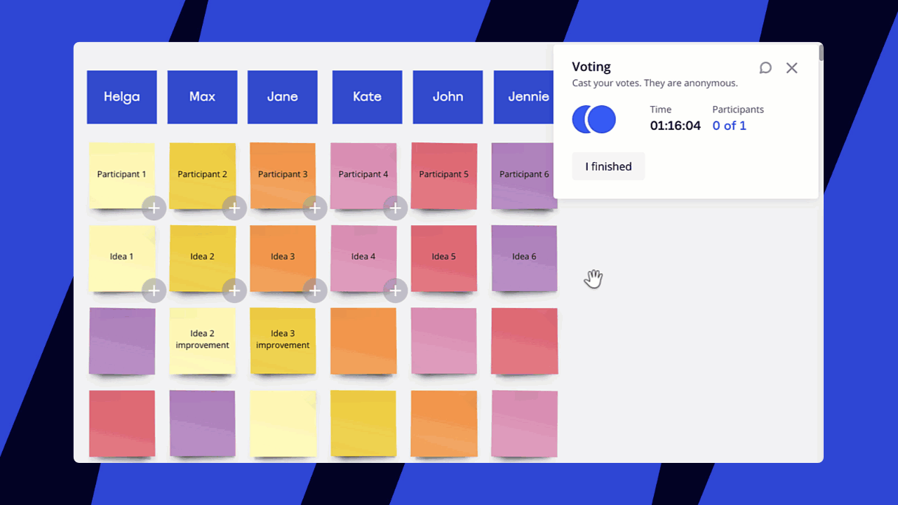 If you want to get your book club members to all vote at the same time, an engaging approach would be to use a dot-voting platform like Miro. While this option will exclude any mobile-only participants, the countdown timer and colorful dot votes create a fun and exciting experience for those who are able to join all at the same time.