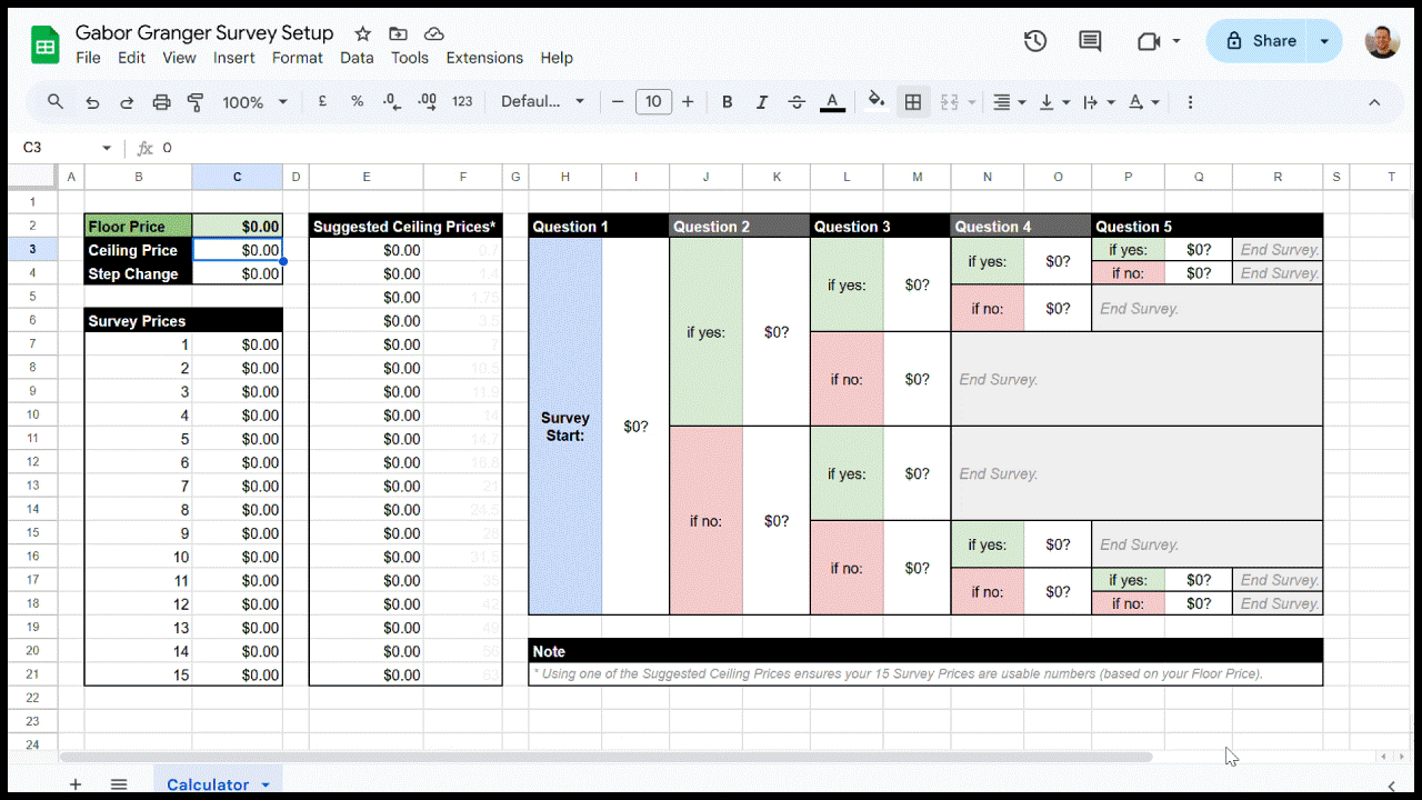 iii. How to turn your Gabor Granger spreadsheet template into a survey?