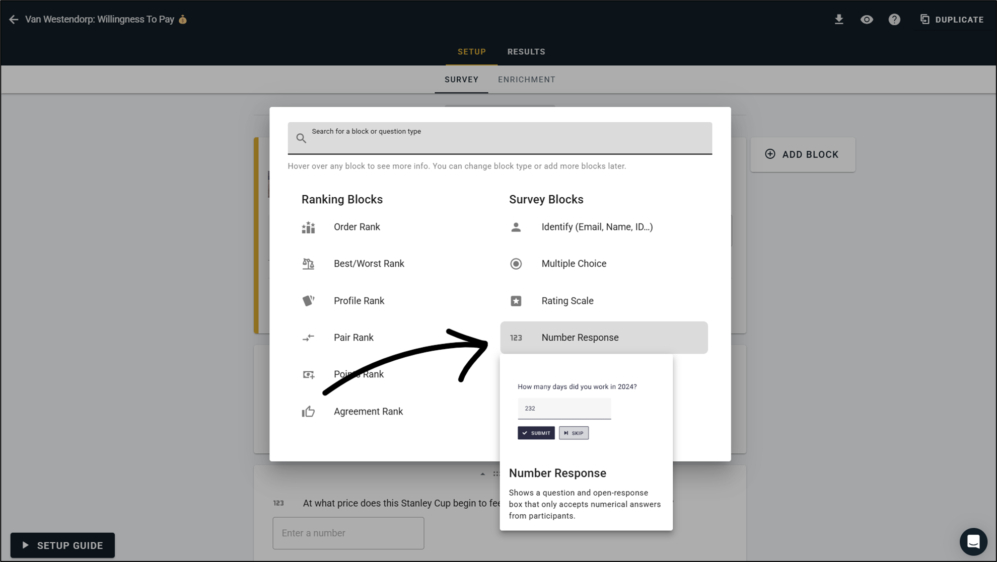 Number Response blocks are available on all OpinionX surveys to both free users and premium customers.