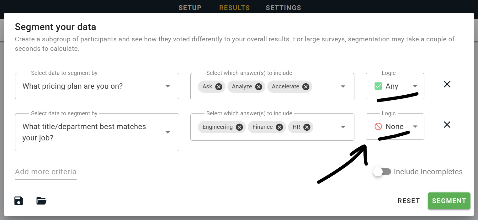 You can now use AND, OR, NOT logic to configure more advanced segmentation filters.