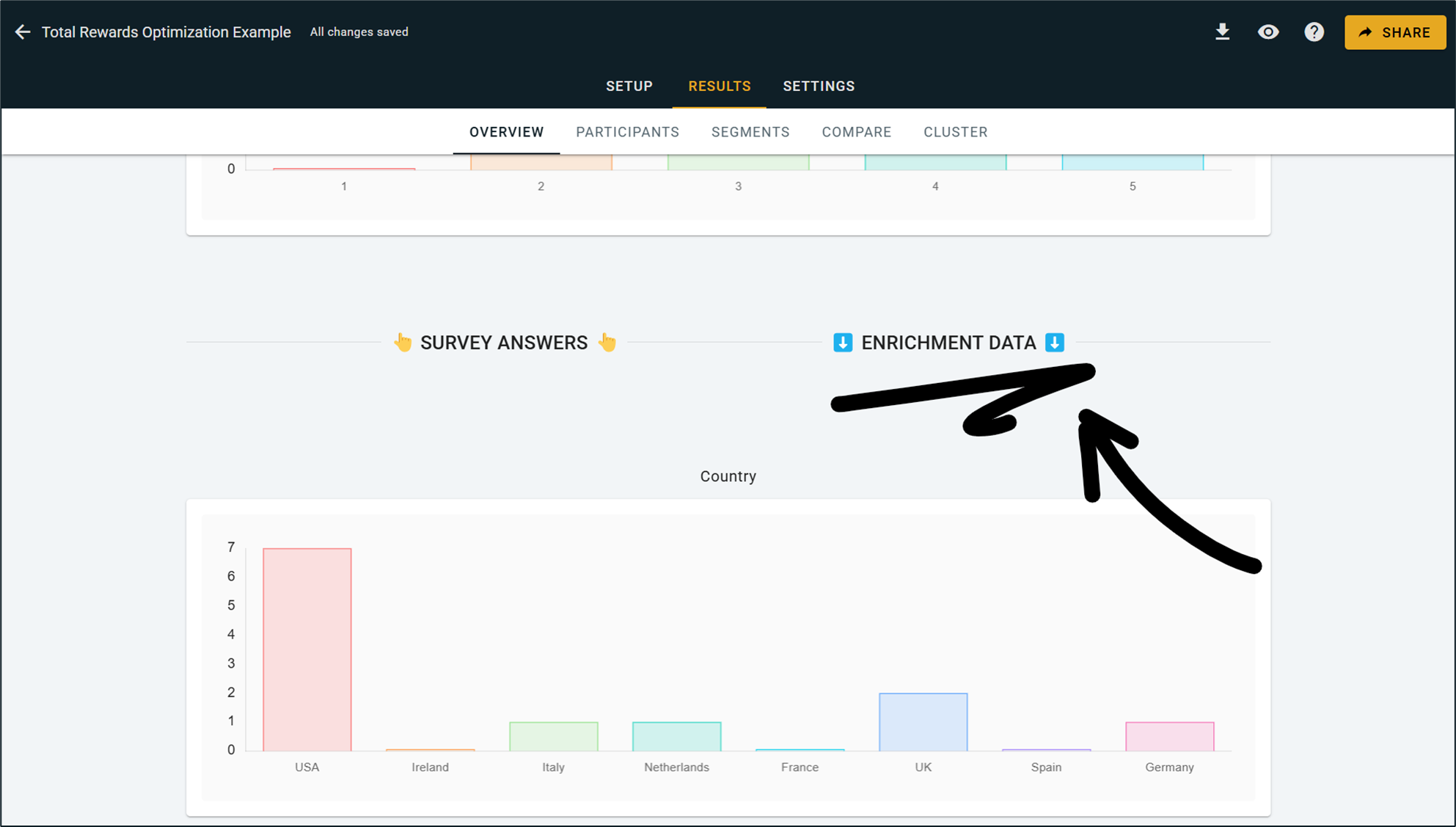 Any enrichment data received via Hidden Fields will appear on all of OpinionX's results pages, allowing you to use our segmentation, clustering, and other analysis methods to dig into your survey results in a deeper way: