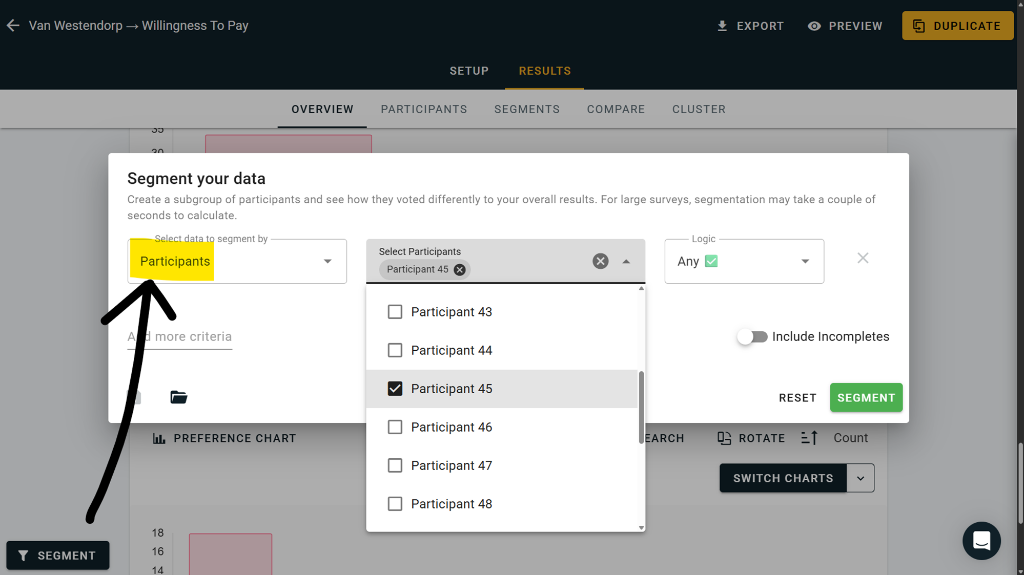 You'll also see a new method in the segmentation menu's dropdown list for different data types, where you can hand pick multiple participants manually by scrolling or searching for the specific participants you want to include: