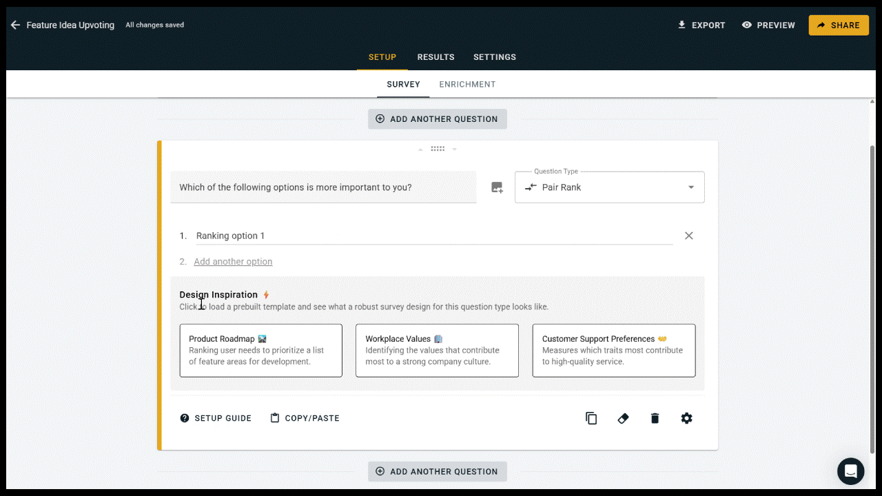 We just added a bunch of improvements to the Survey Setup page that will make your life a lot easier when creating OpinionX surveys: