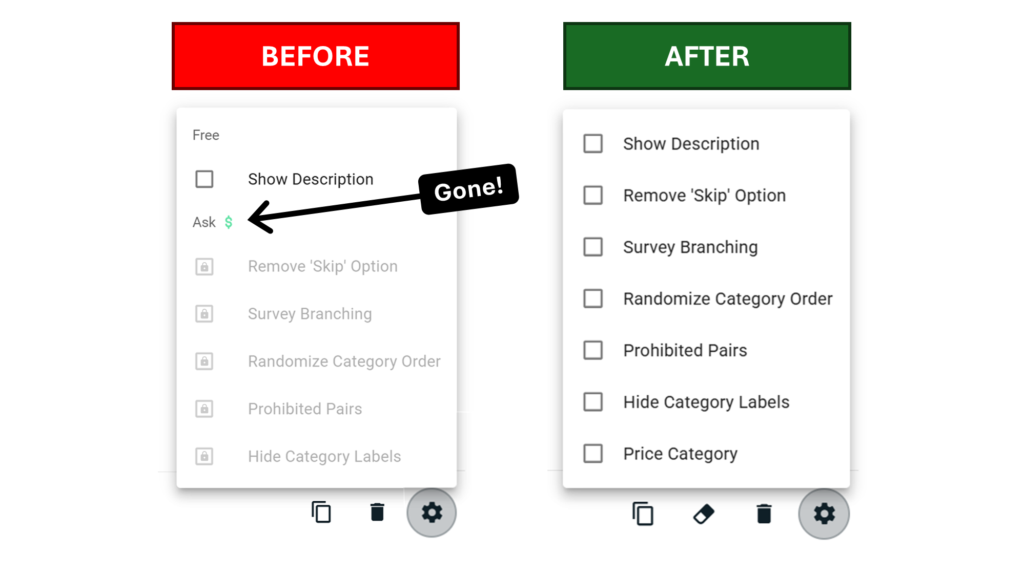 Starting today, all survey setup options are now available on the free tier, including branching logic, hidden fields links, and advanced conjoint setup.