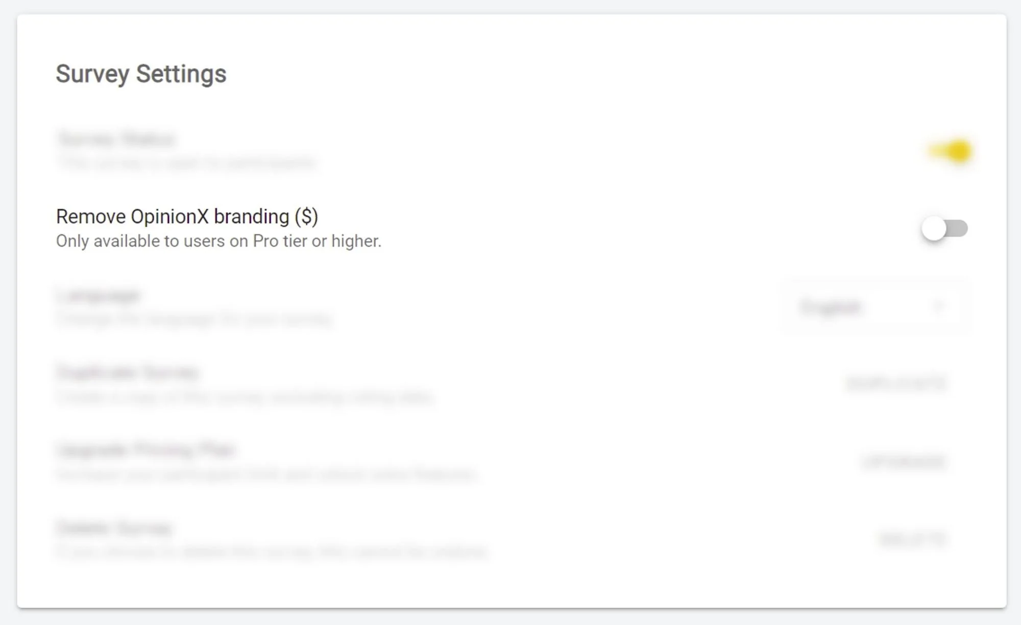 Whitelabeling → Scale tier users will be able to remove the "Powered by OpinionX" button from the footer of their surveys.