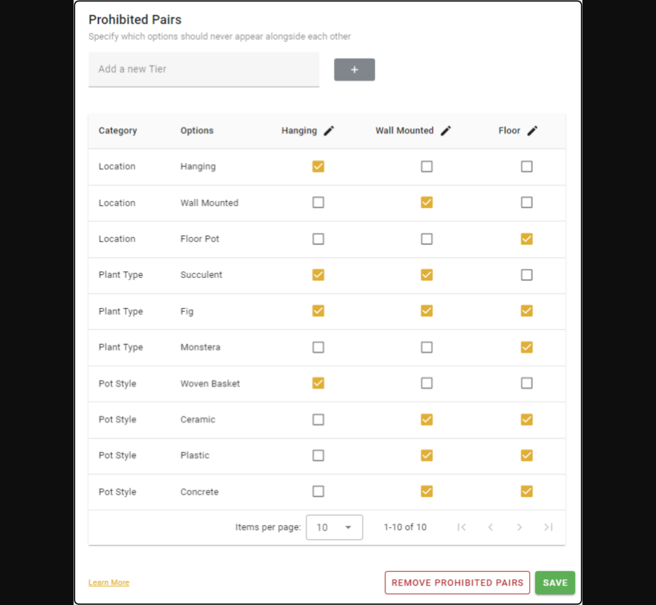 4. Prohibited Pairs UI: We made further improvements to the design of the Prohibited Pairs window that customers on the Ask tier or higher can use to create logic exclusions during their Profile Rank configuration.