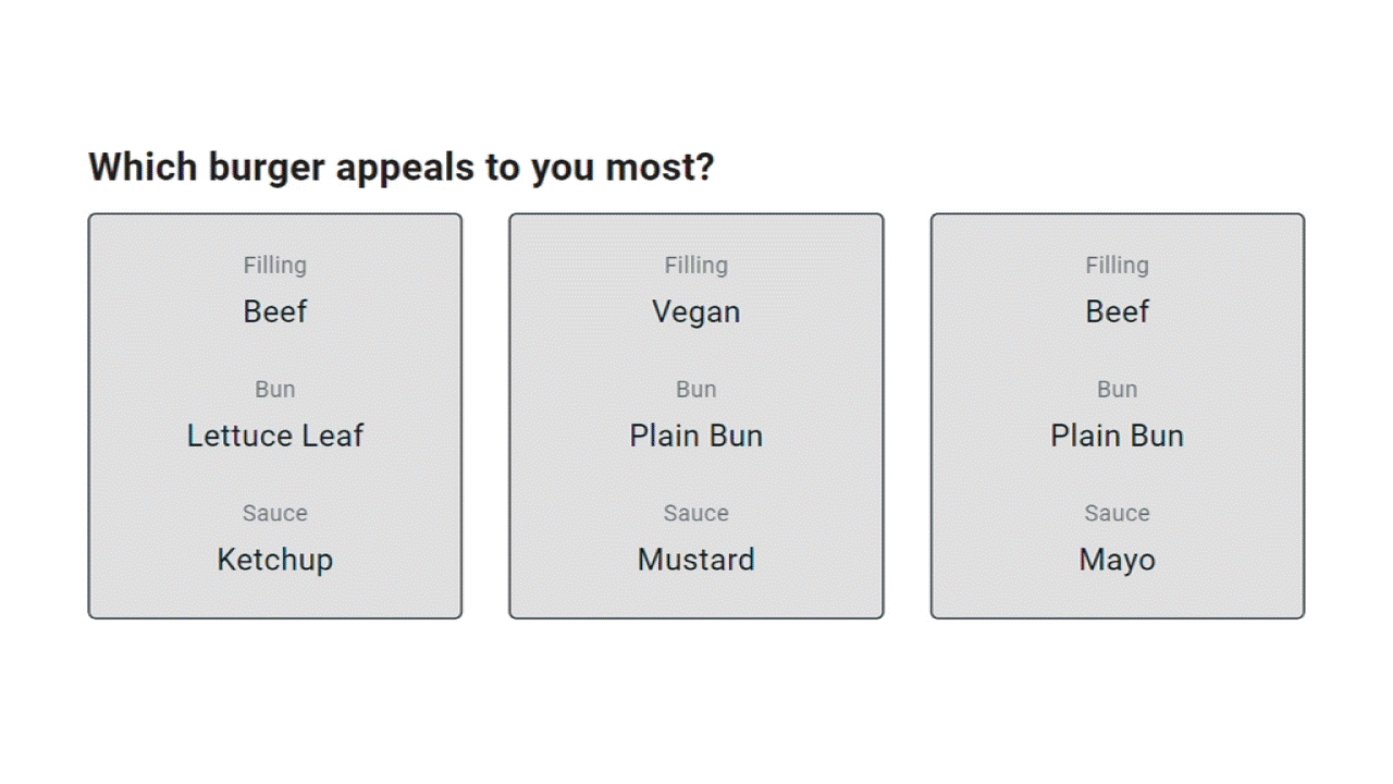 Conjoint surveys on OpinionX have just got a range of new advanced analysis reports! You can try them for yourself on this sample survey — hit the Switch Charts button and switch between the following charts: