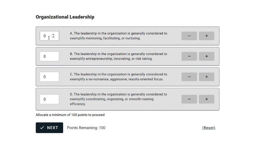 ⬆️ Example of an OCAI survey hosted on OpinionX ⬆️