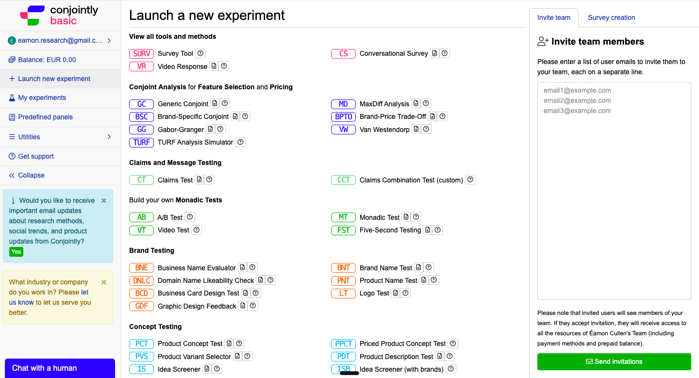 | Conjoint Analysis | ✅ Free, self-serve | ✅ Free, self-serve |