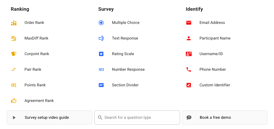 | MaxDiff Analysis | ✅ Free, self-serve | ✅ Free, self-serve |